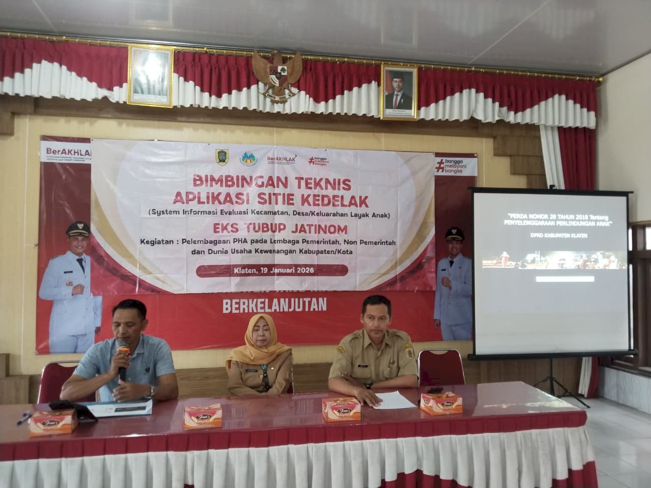 Dalam rangka evaluasi dalam pemenuhan hak anak di Kabupaten Klaten telah dibangun sebuah aplikasi evaluasi Kecamatan dan Desa/Kelurahan Layak Anak sebagai sarana evaluasi bagi Kecamatan, Desa/Kelurahan dalam pemenuhan hak anak menuju Kabupaten Klaten Layak Anak. Kegiatan ini dilaksanakan pada tanggal 19 Januari 2026 di Aula Kecamatan Jatinom dengan diikuti oleh perwakilan dari Unsur Gugus Tugas Kecamatan Layak Anak, Unsur Pejabat atau Staff Kecamatan dan Gugus Tugas Desa Layak Anak eks Tubup Jatinom.