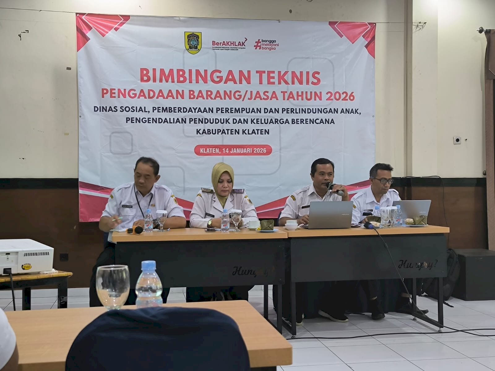 Dalam rangka meningkatkan pemahaman dan kapasitas aparatur terkait pengadaan barang dan jasa, DISSOSP3APPKB Kabupaten Klaten menyelenggarakan kegiatan Bimbingan Teknis Pengadaan Barang/Jasa pada Rabu, 14 Januari 2026, bertempat di New Merapi Resto (Wisma Bethel Room), Jl. Merapi, Gayamprit, Klaten.