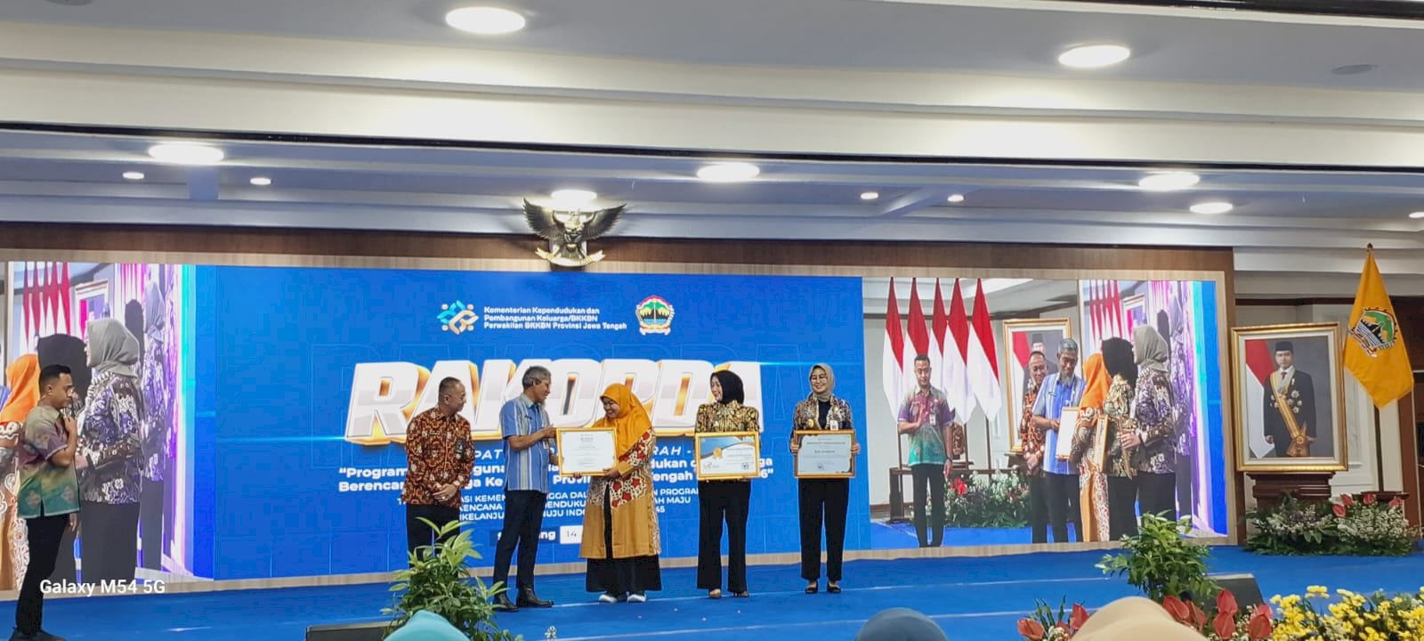 Penerimaan penghargaan peserta terbaik TAMASYA di KERABAT Tingkat Nasional tahun 2025 dari Kementrian Kependudukan dan Pembangunan Keluarga/BKKBN kepada Ibu Nofi Utami Widyaningsih selaku pengasuh di TPA Aisyiyah Tegal Sepur Kel. Klaten, Kec. Klaten Tengah, Kab. Klaten. Penyerahan oleh Bapak Sekda Provinsi Jawa Tengah di dampingi Bapak Kaper Kemendug Bangga/BKKBN Prov.Jateng dalam RAKORDA Program BANGGA KENCANA Provinsi Jateng Tahun 2026 di Gedung GRADHIKA BHAKTI PRAJA Provinsi Jateng pada Selasa tanggal 14 April 2026.