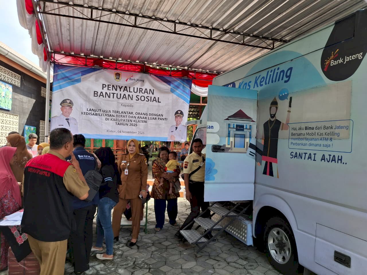 Pada hari Selasa (4 November 2025), DISSOSP3APPKB Kabupaten Klaten melaksanakan penyaluran Bantuan Sosial bagi Lanjut Usia Terlantar, Orang dengan Kedisabilitasan Berat, serta Anak di Luar Panti dalam rangka kegiatan Sambung Roso di Desa Kedungan Kecamatan Pedan.Dalam acara tersebut terdapat penyerahan bantuan secara simbolis kepada perwakilan penerima manfaat, sebagai bentuk komitmen pemerintah dalam menghadirkan layanan sosial yang dekat, merata, dan tepat sasaran di tengah masyarakat.Penyaluran dilakukan melalui Mobil Kas Keliling Bank Jateng yang hadir langsung di lokasi saat kegiatan tersebut, sehingga memudahkan penerima untuk melakukan pencairan.Selain itu, bantuan juga dapat dicairkan di seluruh Kantor Cabang/Cabang Pembantu/Kantor Kas Bank Jateng di Kabupaten Klaten dengan membawa persyaratan yang diperlukan. Pencairan dilaksanakan dari tanggal 4 hingga 8 November 2025. Dengan adanya bantuan ini diharapkan bisa memberikan manfaat nyata serta meringankan kebutuhan penerima bantuan sosial.